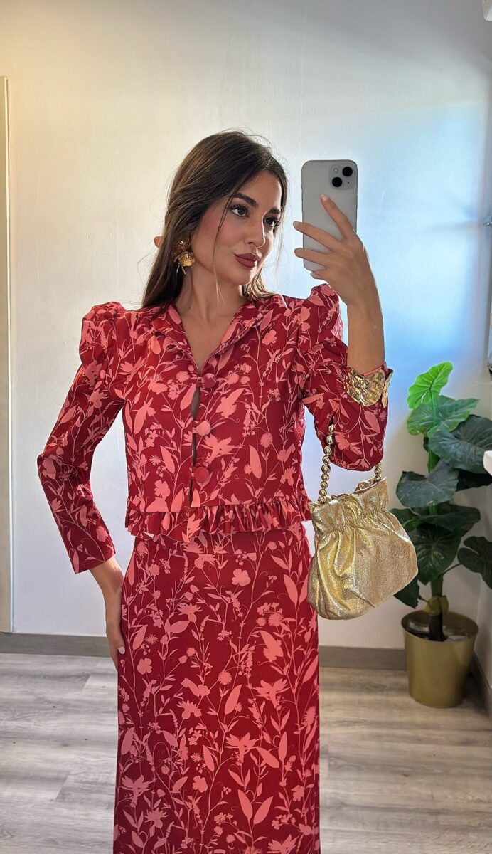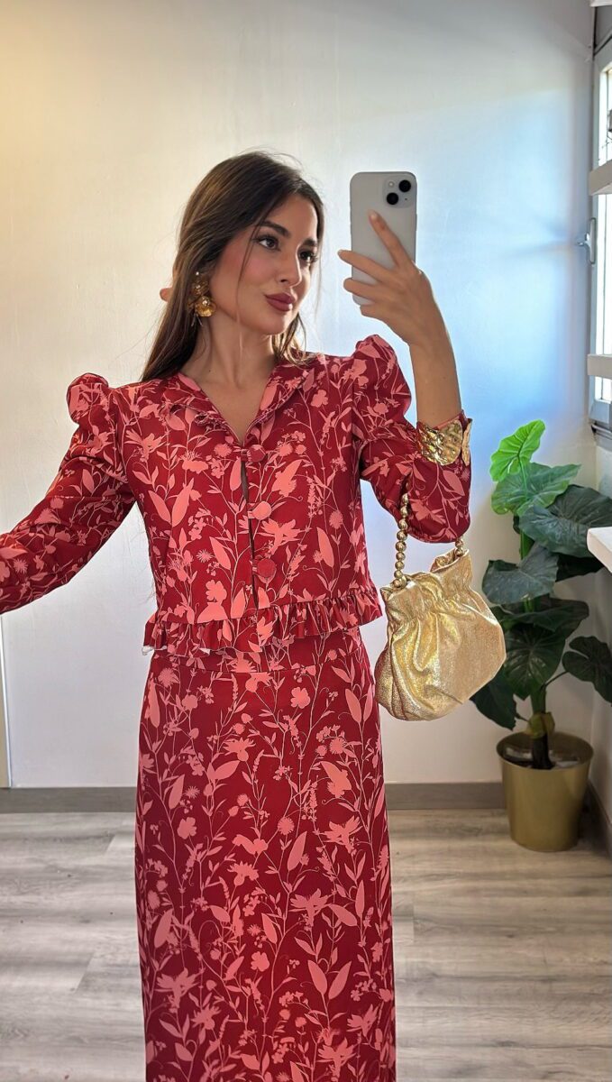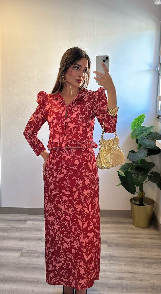mangas abullonadas y falda con cinturilla elástica