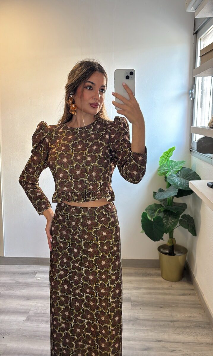 mangas abullonadas y falda con cinturilla elástica