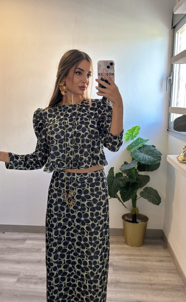 mangas abullonadas y falda con cinturilla elástica